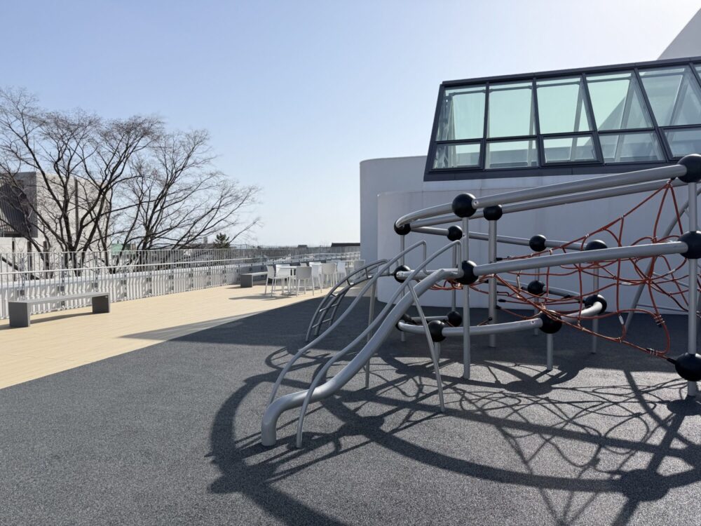 テラスにはちょっとした遊具が置いてある場所もあり、お子さんも飽きずに時間を過ごせる工夫がされています。