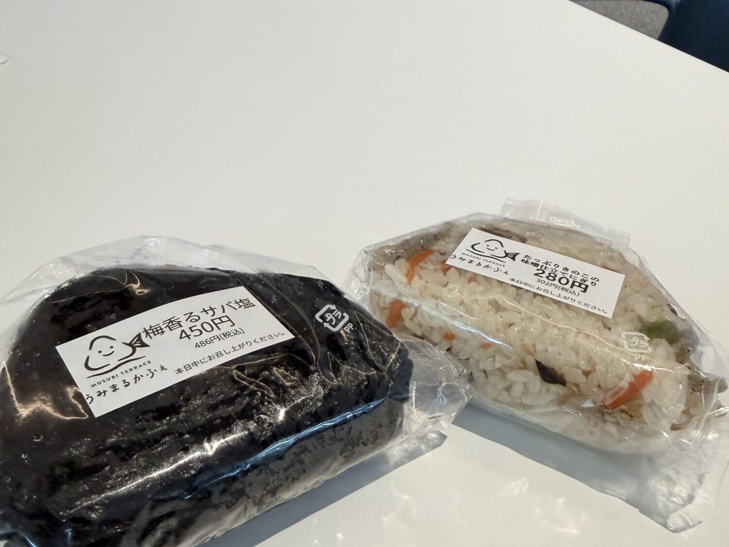 この日は天気は良かったのですが少し肌寒かったので、室内でうみまるかふぇのおにぎりを食べてみました。