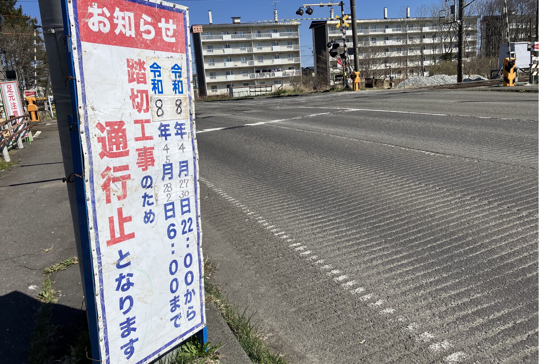先けて4月19日(日)から4月20日(月)にかけてJR室蘭線の錦岡駅〜糸井駅までの間に位置する、「新通り踏切」で工事が行われることをお知らせしていました。