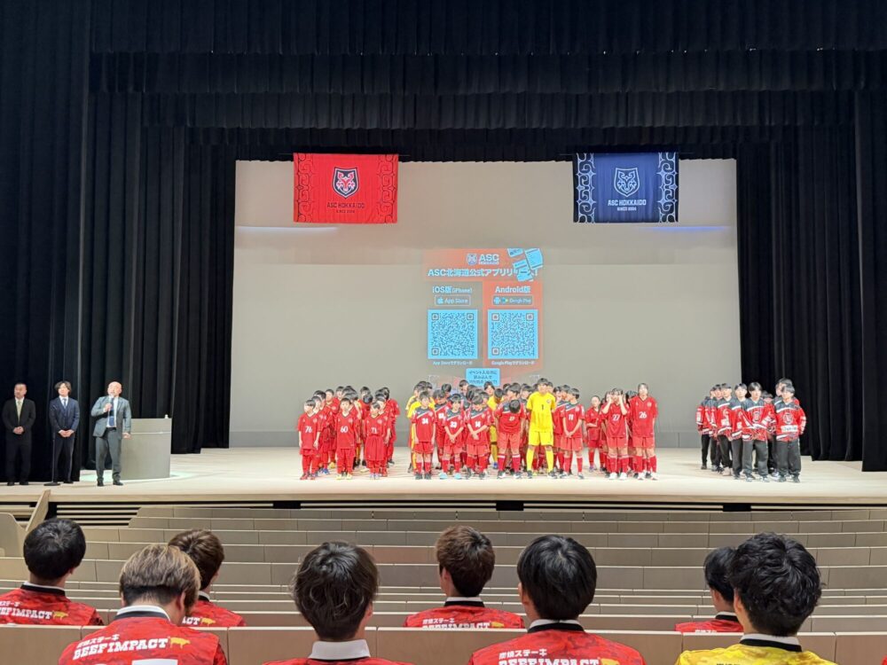 ASC北海道の強みは、なんといってもその育成力です。アカデミー紹介では、小中学生のサッカーチーム、中学女子サッカー、そして氷都苫小牧のお家芸であるアイスホッケー(中学)の選手たちが登壇しました。未来のスターたちの堂々とした姿に、観客の皆さんも熱い視線を送っていました。