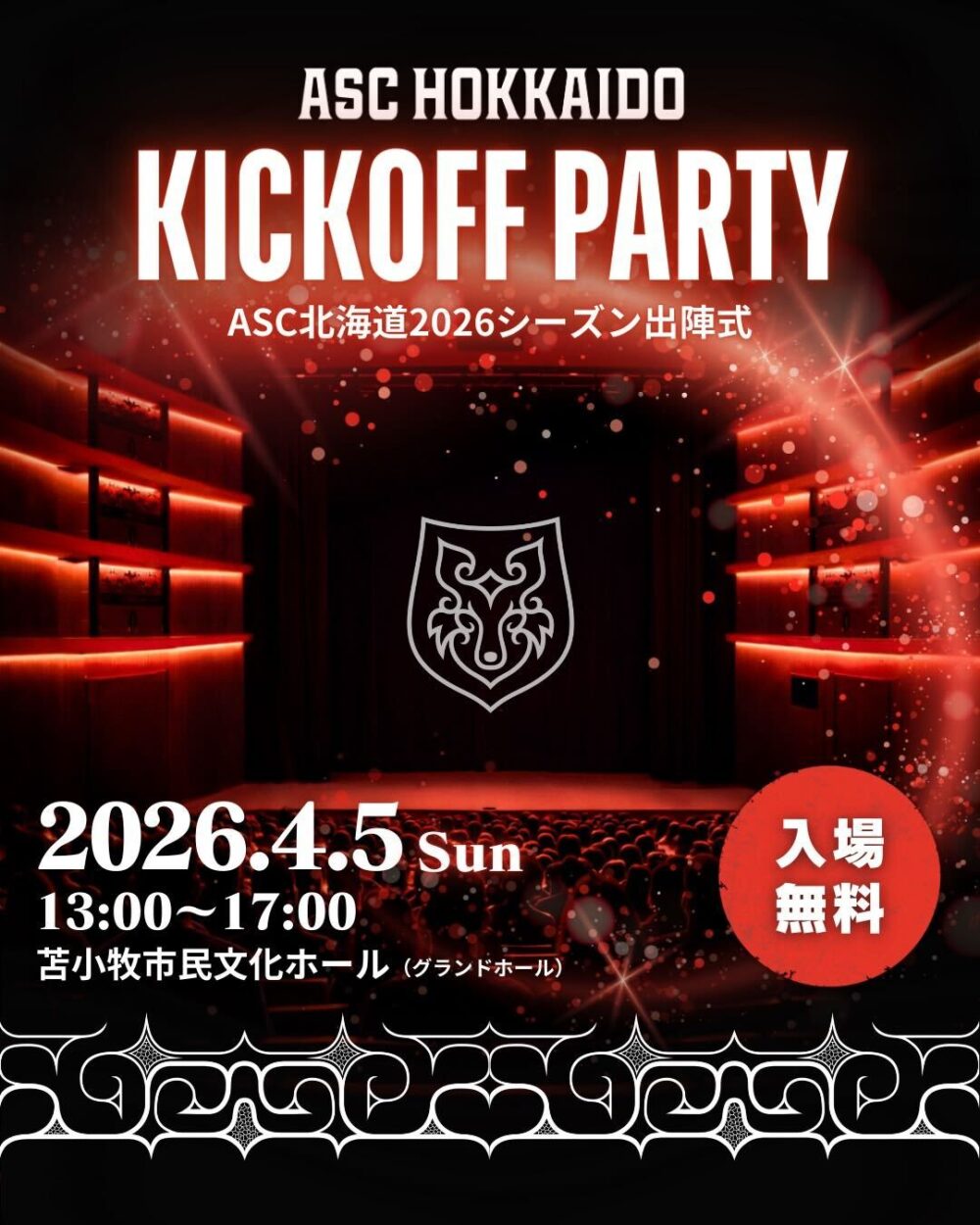 2026年4月5日(日)、苫小牧市民文化ホール「ART CUBES」にて、地元の総合型地域スポーツクラブ「ASC北海道」の2026シーズン出陣式が開催されました。